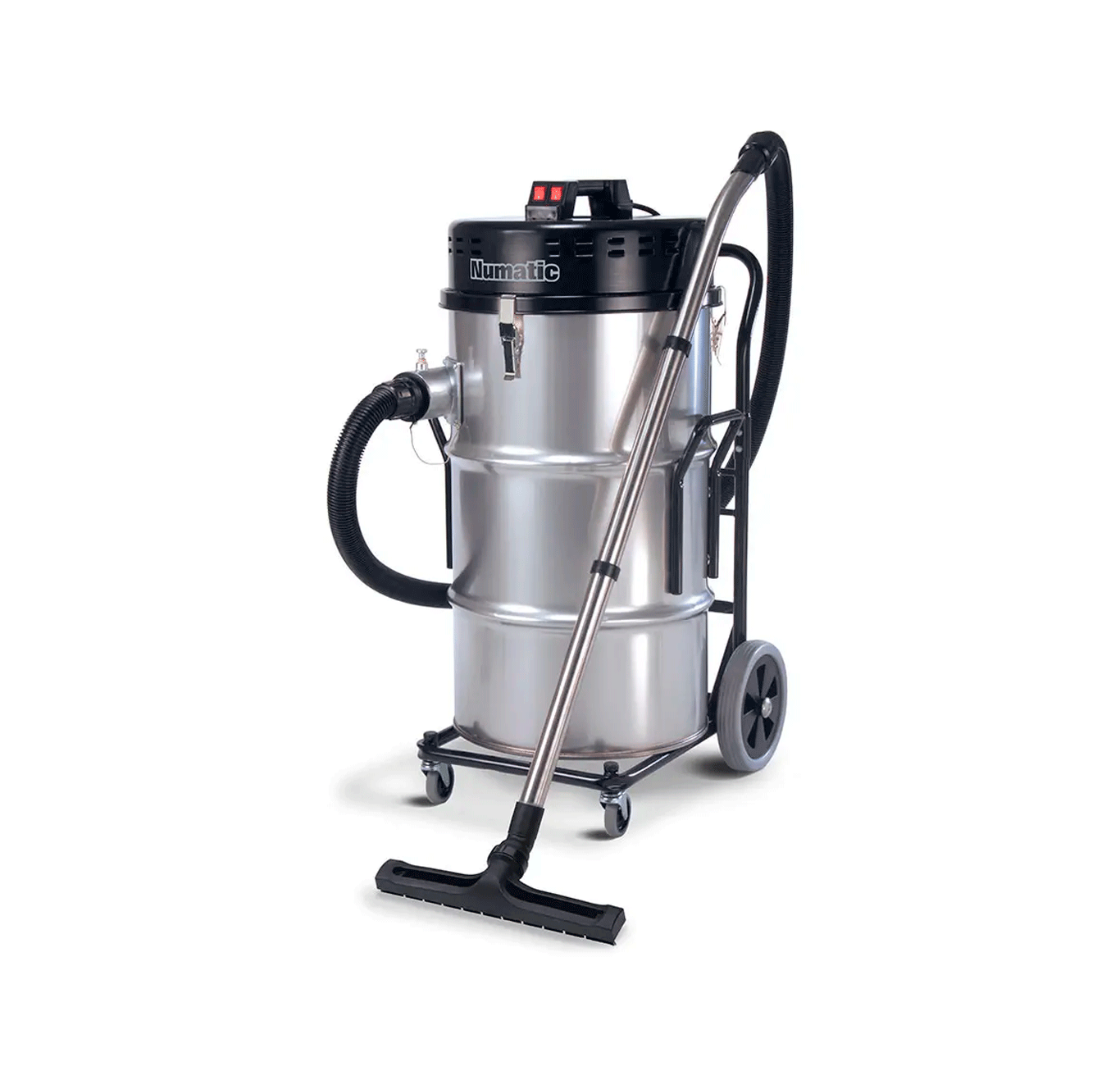 Uma máquina de grande capacidade; Cabeça motorizada TwinFlo com 3 motores, sistema de filtro gigante que pode ser agitado, contentor em aço inoxidável e chassis de transporte para trabalhos pesados.